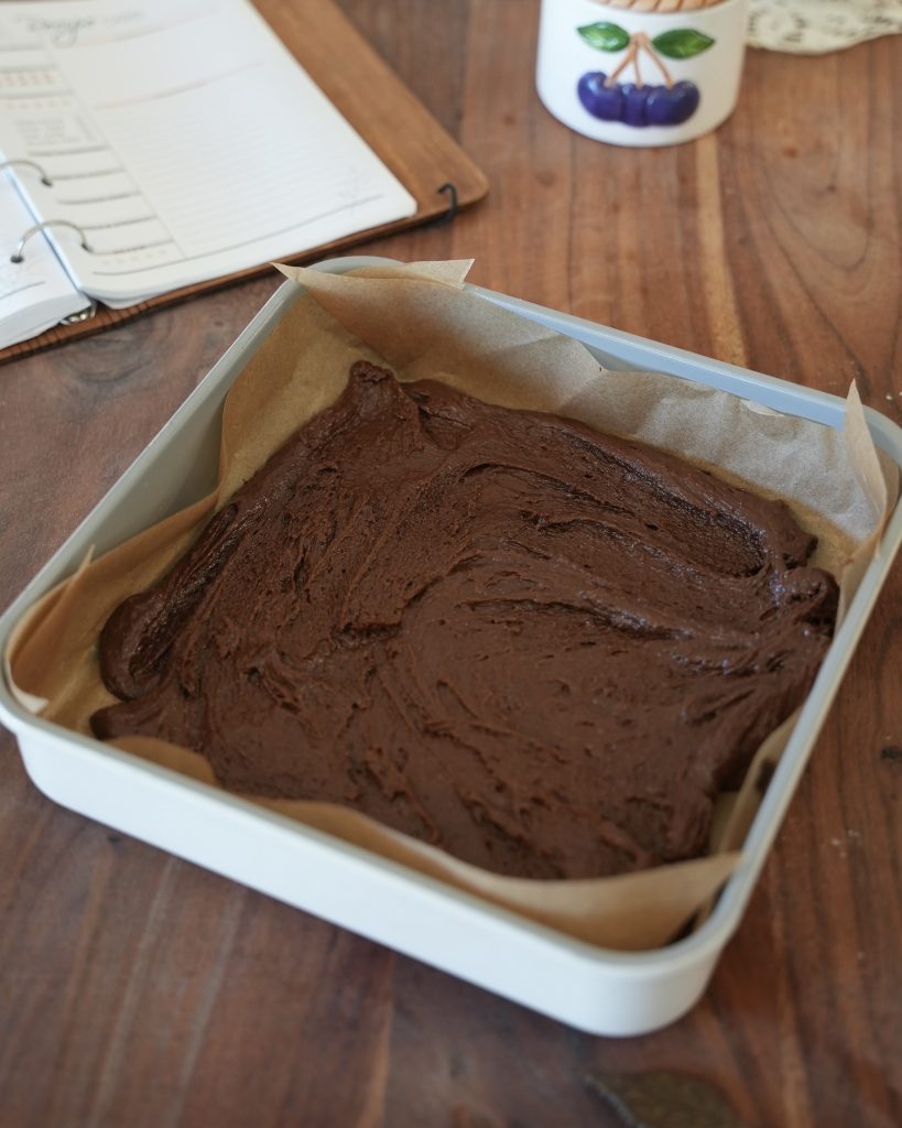 - Preheat your oven to 350°F (175°C). Grease and line an 8×8-inch (20×20cm) square pan with parchment paper, leaving an overhang for easy removal later