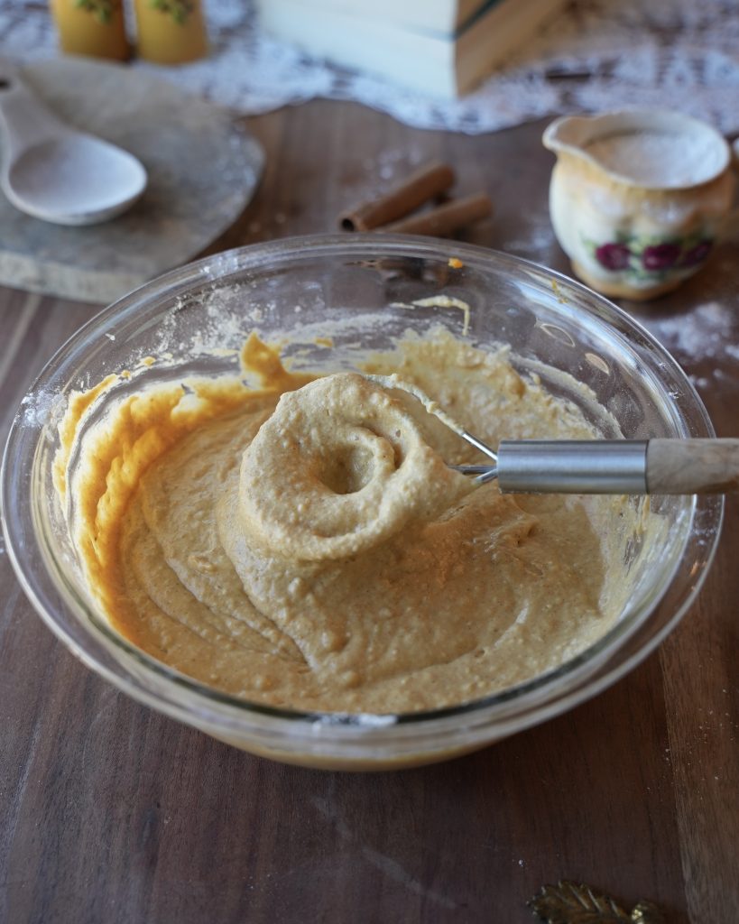 - In a large bowl, whisk together the flour, baking powder, salt, brown sugar, and cinnamon (or pumpkin spice). In another bowl (or in the same bowl) , mix the milk, pumpkin puree, eggs, and melted butter until smooth. Gently fold the wet ingredients into the dry until just combined. A few lumps are okay!