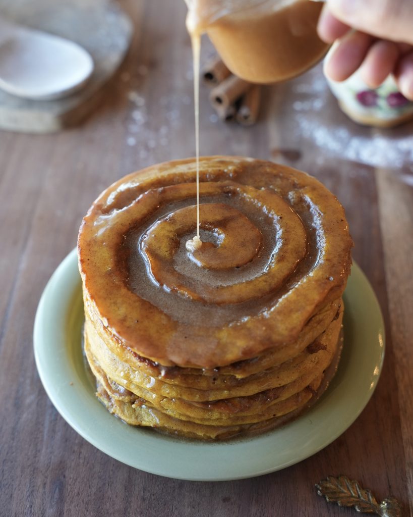 Pumpkin Cinnamon Roll Pancakes