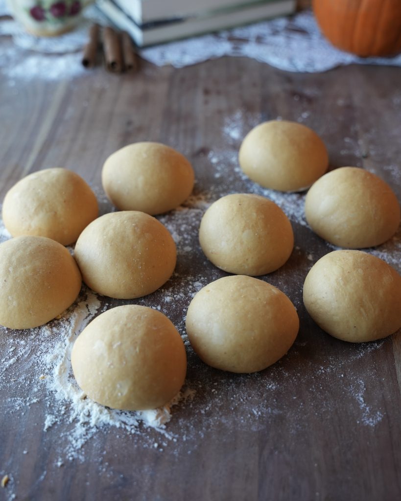 - Pumpkin purée can vary in water content. If your dough feels sticky even after kneading, dust in extra flour 1 tablespoon at a time.