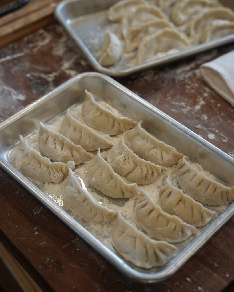 - Get a nice golden color on the dumplings before steaming. If they’re pale, give them another minute before adding water