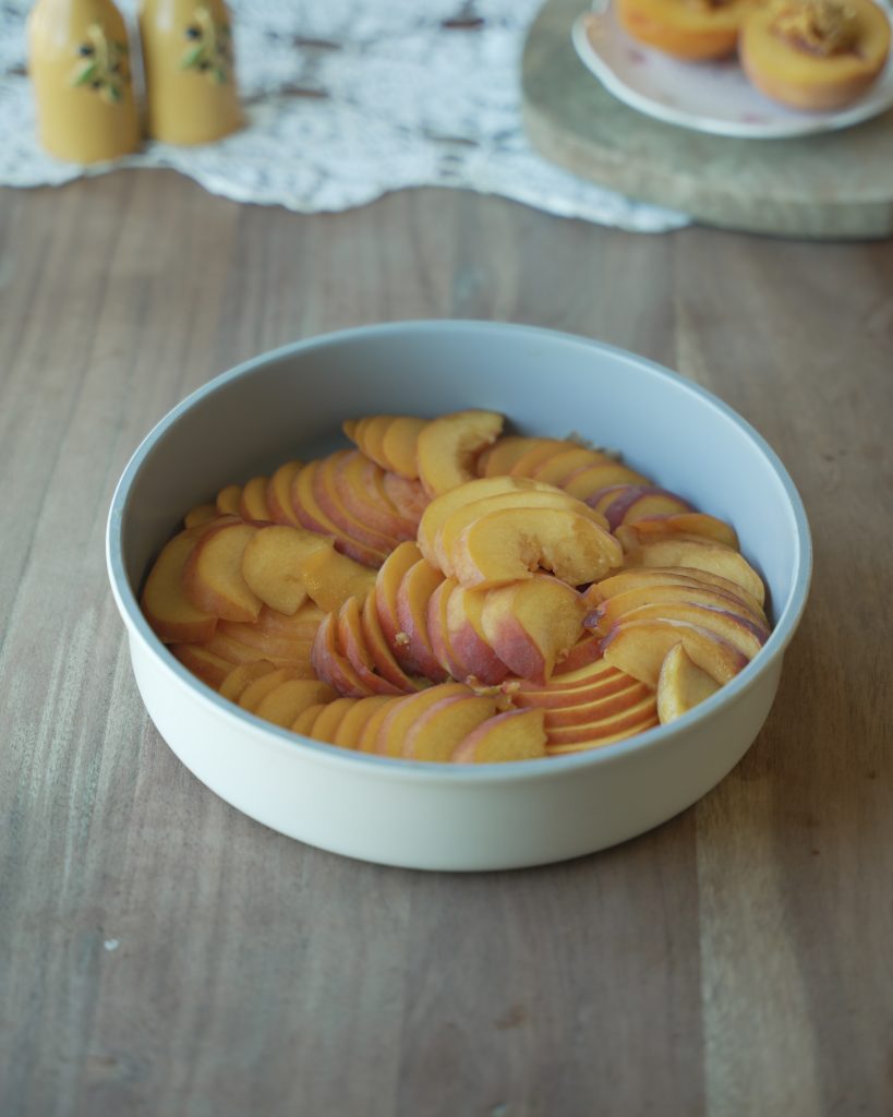 - Flip onto a plate while still warm so the peaches release