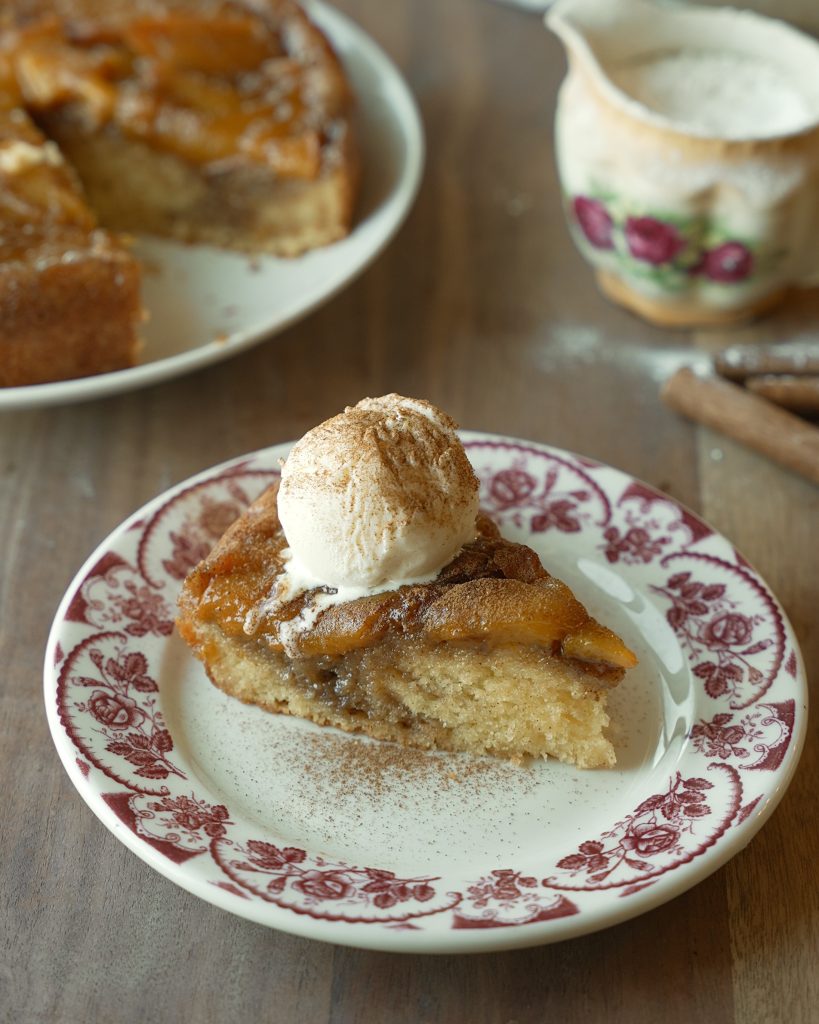 Soft, buttery cake baked with peaches, where the sugar mixture melts into the batter just a bit, creating a warm, cozy dessert that’s perfect with vanilla ice cream and a sprinkle of cinnamon on top !!