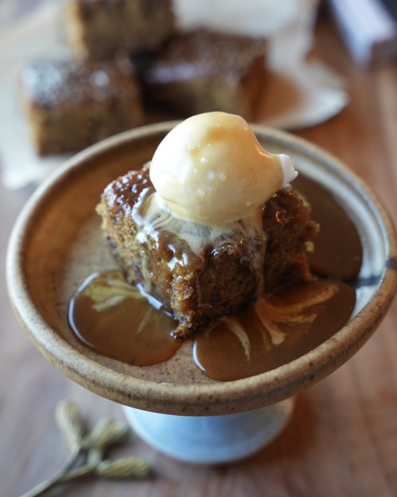 - Rest only for 10 minutes, I find that to be perfect. The caramel needs a sec to settle so it doesn’t run everywhere, but we also want the cake to stay warm so it releases nicely from the pan.”