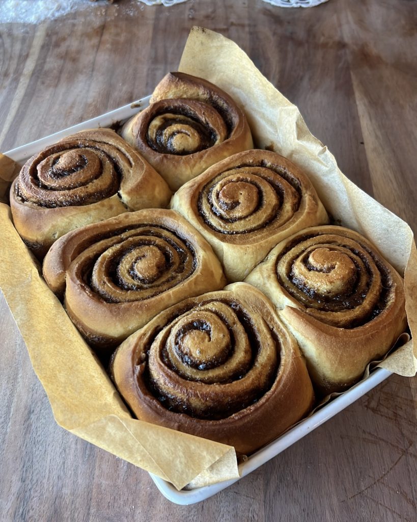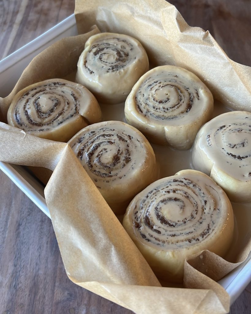 - Preheat the oven to 350°F (175°C). Pour the espresso–cream mixture evenly over the risen rolls. Bake for 25–30 minutes, or until golden brown and bubbling around the edges.